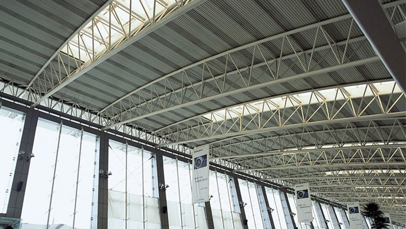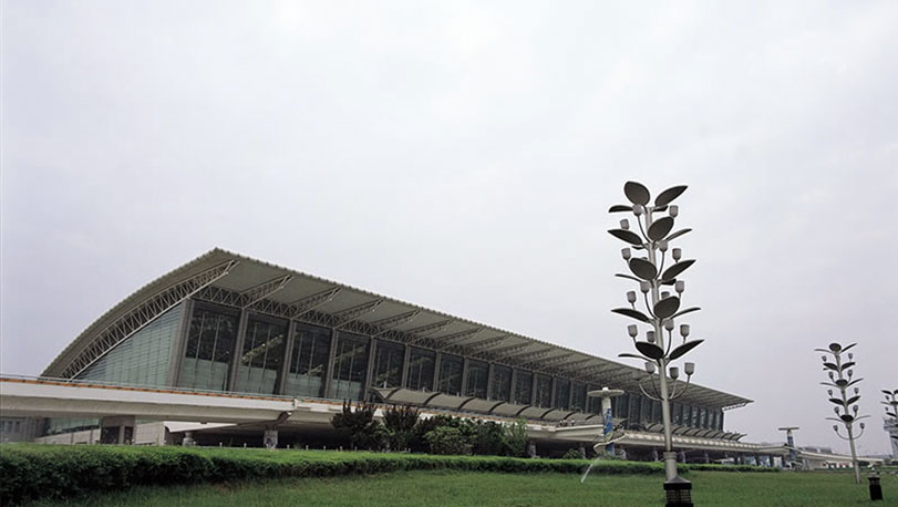 咸陽國際機場位于中國內(nèi)陸中心,是西北地區(qū)最大的空中交通樞紐。2009年開始擴(kuò)建,目前有2座候機樓,共10萬平方米,外墻面及外屋面都采用了寶鋼鍍鋁鋅彩涂鋼板。外屋面采用白灰PE鋼板,牌號為TDC51D+AZ,鋁鋅重量為150克/平方米。