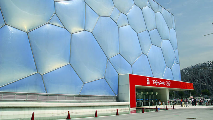 國家游泳中心位于北京奧林匹克公園內(nèi),2008年北京奧運會標志性建筑物之一。2007年建設,設計體現(xiàn)出“水立方”的設計理念,融建筑設計與結構設計于一體,設計新穎,結構獨特。