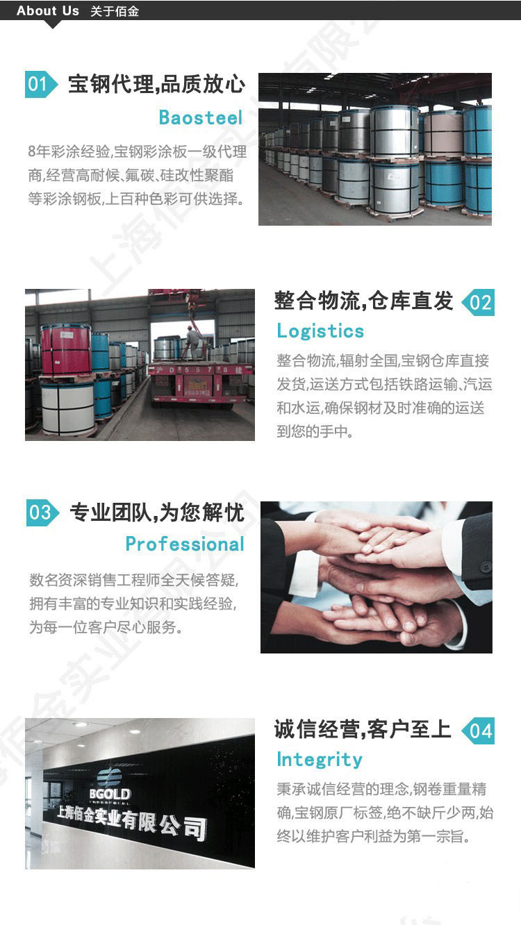 2016年公司在湖北·武漢成立了上海佰金實(shí)業(yè)有限公司華中(武漢)銷售中心,佰金武漢銷售中心位于武漢經(jīng)濟(jì)開發(fā)區(qū)東風(fēng)三路1號(hào),主要產(chǎn)品為:金屬建筑屋面、墻面材料-寶鋼、寶鋼黃石彩涂板,鍍鋁鋅本色(光)板,是華中地區(qū)最專業(yè)的金屬圍護(hù)系統(tǒng)材料供應(yīng)商。我們擁有一批專業(yè)的金屬建筑材料銷售顧問,為您提供質(zhì)量最優(yōu),性價(jià)比最高,最適合中部環(huán)境的選材方案!