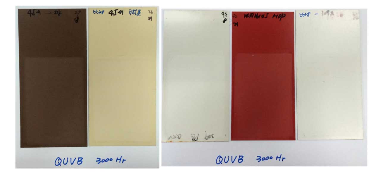 • 經(jīng)過3000小時QUVB試驗后,45微米氟碳產(chǎn)品涂層粉化仍保 持0級。