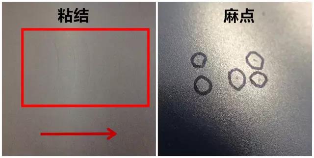 罩退料沒“麻點(diǎn)”,連退料無“粘結(jié)”;罩退料較臟、連退料干凈;罩退有“挫傷”、連退有“劃傷”等等。
