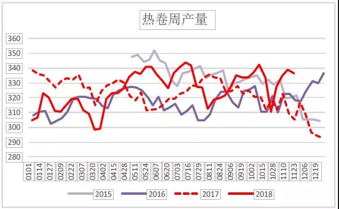 螺紋、熱軋周產量變化