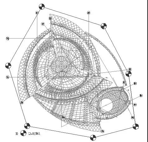 圍繞整個屋蓋部分設置的4個主控制點組成的多邊形控制網 |