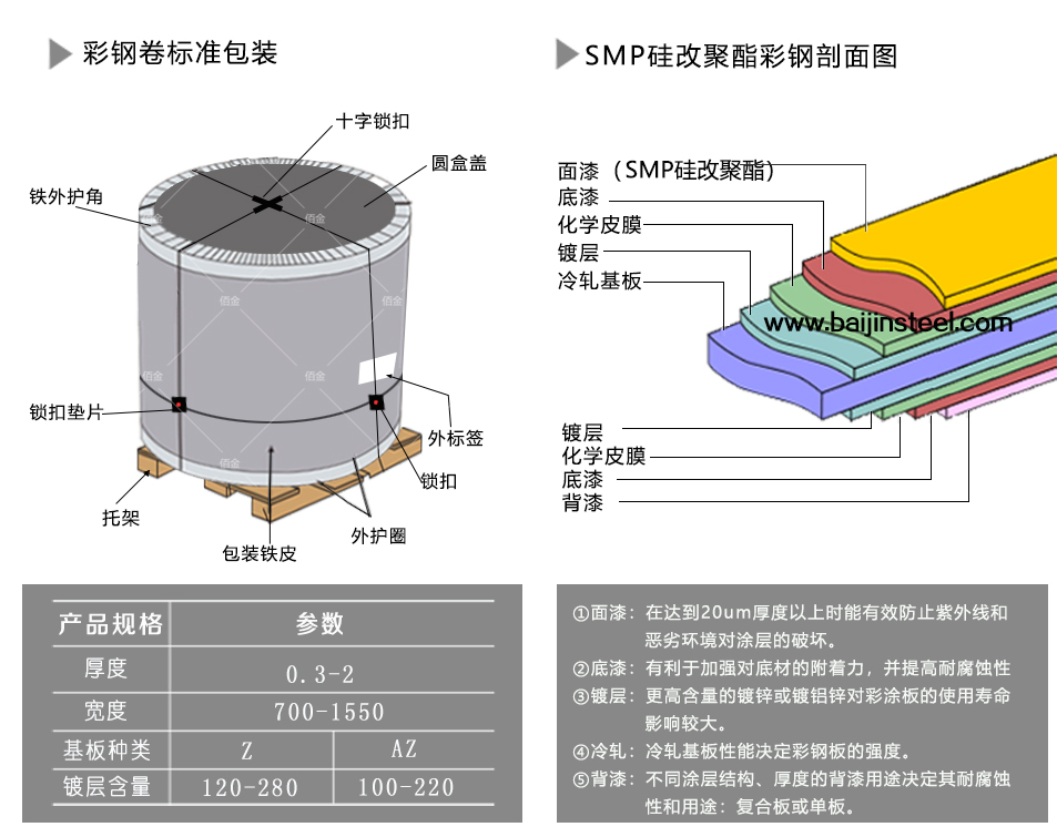 注:本網(wǎng)站數(shù)據(jù)部分來源寶鋼彩涂板企業(yè)標(biāo)準(zhǔn)BQB/440 -2014 ,寶鋼彩涂板產(chǎn)品手冊,及工程案例。